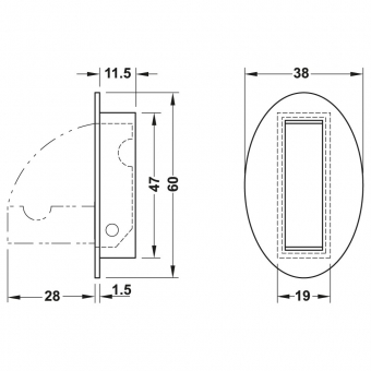 Edelstahl Garderobenhaken, 38 x 60 mm