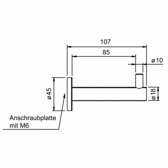 Haken 18 mm - Anschraubplatte 45 mm