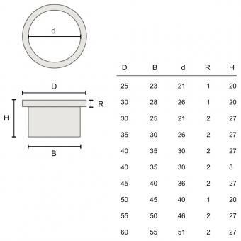 Der offene Kabeldurchlass aus Edelstahl kann in 8 verschiedenen Bohrmaßen bestellt werden: Die Bohrmaße betragen von 23 bis 55 mm mit einem Aussendurchmesser von 25 bis 60 mm und einem Innendurchmesser von 21 bis 51 mm (Höhe 20-27 mm).