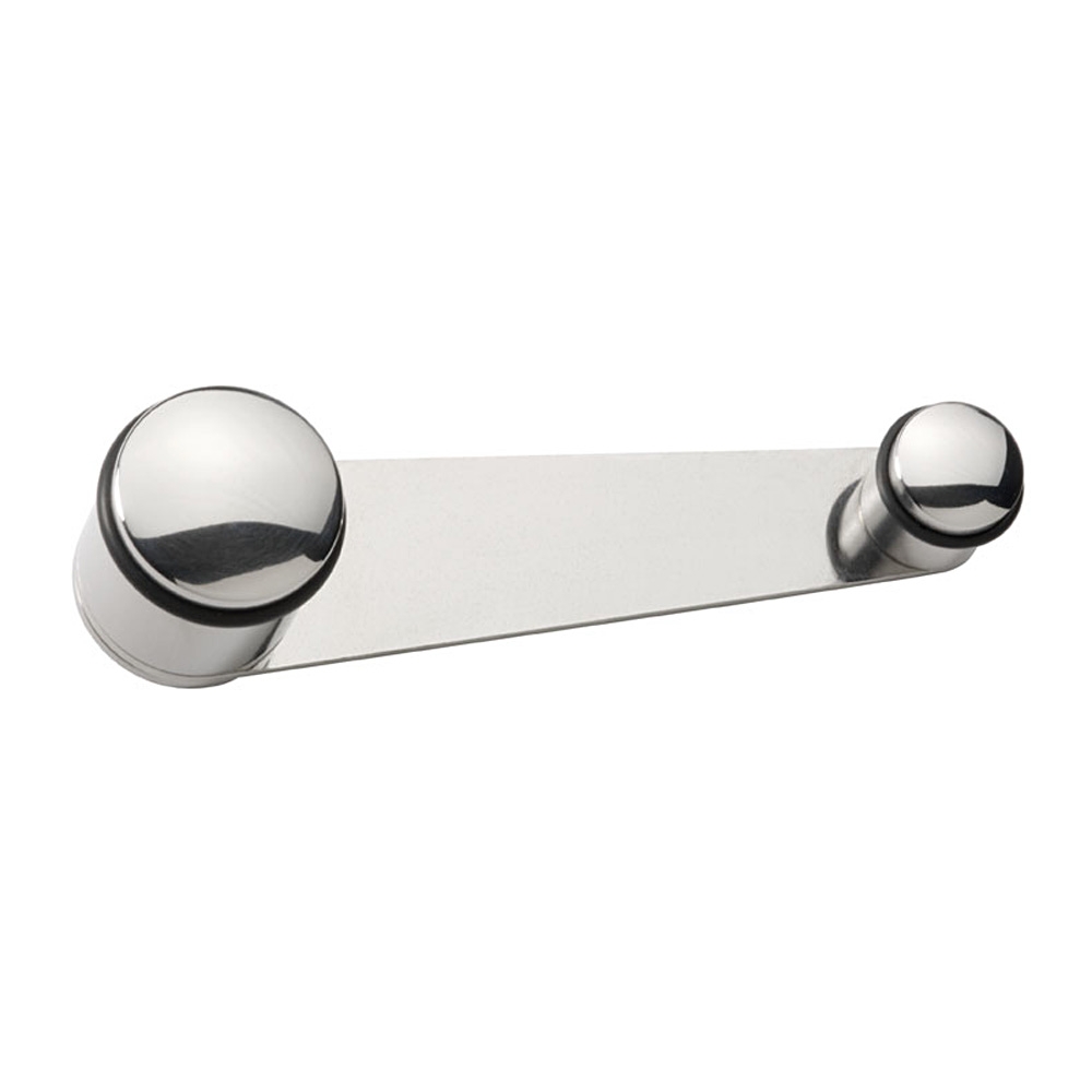 Türstopper aus hochglanz poliertem Edelstahl, für Türen mit Schließern ohne Feststellung - durch Drehen kann die Tür zwischen den Anschlägen fixiert werden - Höhe 28,5 mm - Länge 106 mm