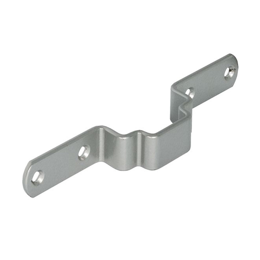 Frontstabilisator aus Stahl für Hochschrankauszüge mit weißaluminiumfarbener Kunststoffbeschichtung zur Stabilisierung hoher Fronten z.B. Küchenschränken mit Auszug bzw. Apothekerauszüge. Der Stabilisator kann dabei positionsunabhängig am Tragrahmen angeschraubt werden.