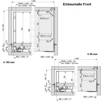 - für Innenschublade H89 mm / Innenauszug H185 mm - Zargensystem GRASS Vionaro