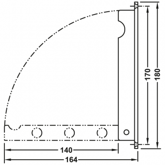 Die Höhe beträgt 180 mm, die Tiefe 24 mm und die Ausladung 164 mm.