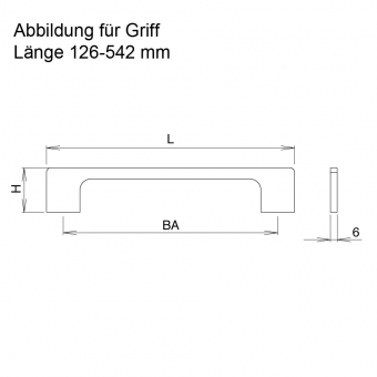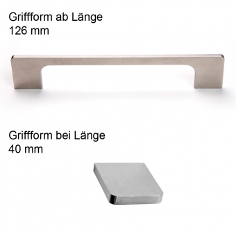 Formschöner Edelstahl Reling-Griff für Möbel mit matter Oberfläche und in verschiedenen Längen von 40 bis 542 mm und mit einem Gewicht von 55,4 bis 326 Gramm.