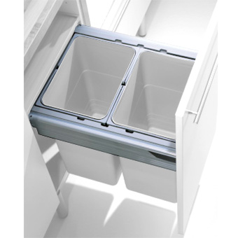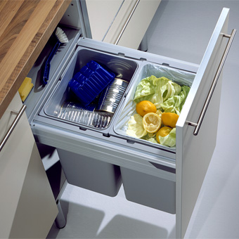 Dieses System ermöglicht den Einsatz der Behälter hängend, integriert in Blum TANDEMBOX. Komplett vormontierte Rahmenkonstruktionen erlauben problemlosen Einbau.