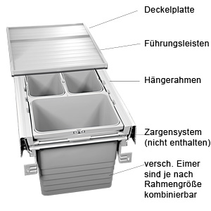 - für Blum TANDEMBOX 378M antaro Zarge - passend für 310 mm hohe Behälter (8 und 17 Liter) / Großraumbehälter 450 mm hoch (26 Liter) und 560 mm hoch (32 Liter) / Zubehör zu Abfalltrennsystem eins2fünf zum Einhängen in Zargenführungssystem