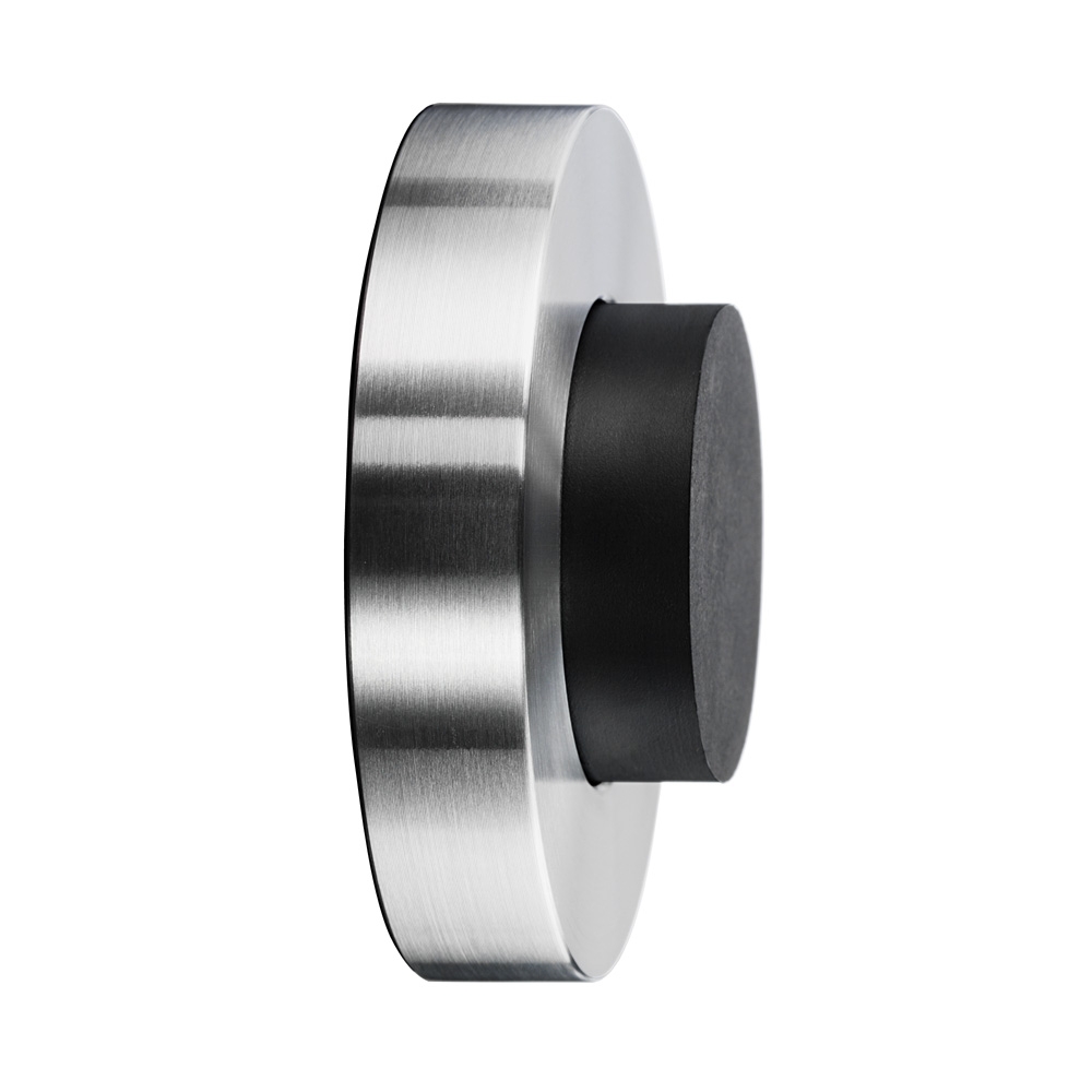 Wandtürstopper Hat aus Edelstahl, zum Schrauben an die Wand - inkl. Befestigungsmaterial - verdeckte Befestigung unter Gummipuffer - Ø 60 mm - Tiefe 22 mm