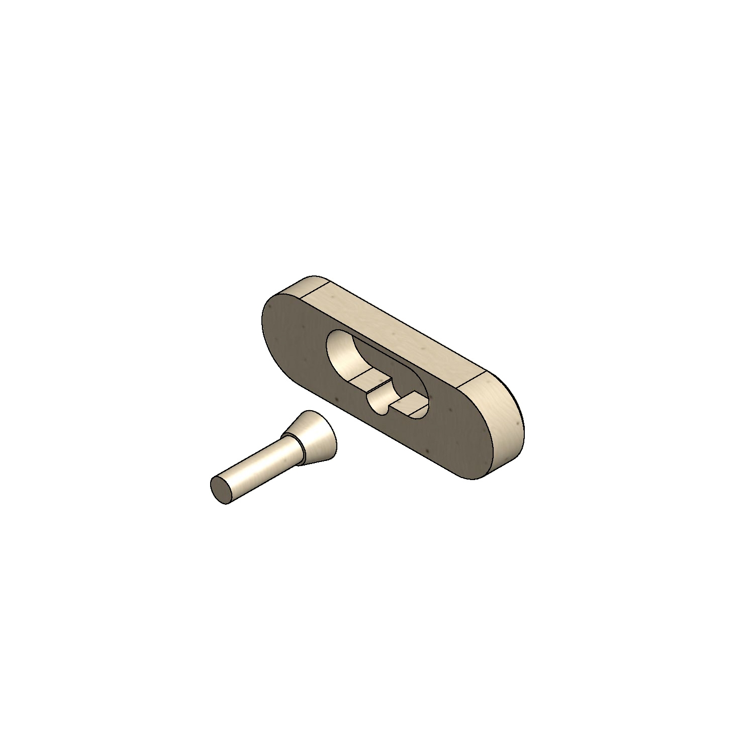 Metallfreie Konusverbindung für waagerechte Anwendung mit Verschub, Set aus Hartholz - 108 x 35 x 16 mm - 1 Verbinder 1 Dübel - selbstspannend - unsichtbar - höchste Stabilität