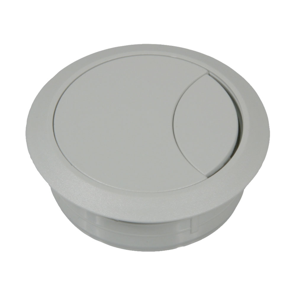 Dieser 2-teilige Kabeldurchlass aus Kunststoff hat eine linsenförmige, mit einem Federmechanismus verdrehbare Kabeldurchführung.