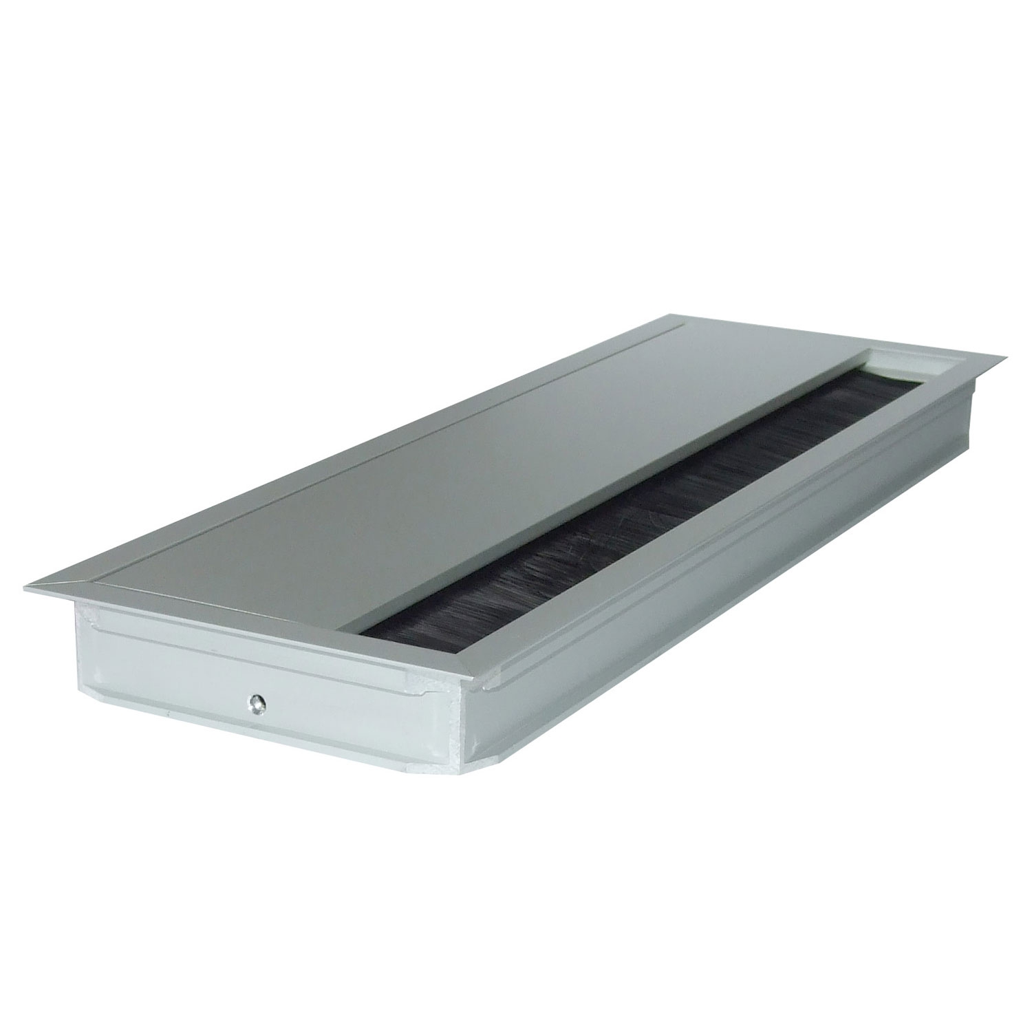 Hochwertiger Kabeldurchlass aus Aluminium mit Soft Close Dämpfungssystem und flexibler Bürstendichtung.