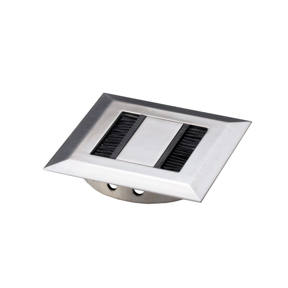 Kabeldurchlass in quadratischer Form aus Zinkdruckguss. Die rechteckigen Öffnungen zur Kabeldurchführung sind mit Staubbürsten abgedeckt. Um größere Stecker durchzuführen, kann der Innendeckel problemlos herausgenommen werden.