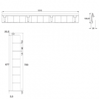 - Horizontal Länge 1200 mm (13 Klappelemente)