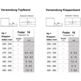 - Klappenhöhe 270-480 m - Holz- / Rahmentüren bis 10 kg