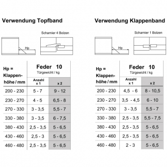 - Klappenhöhe 200-480 m - Holz- / Rahmentüren bis 12 kg