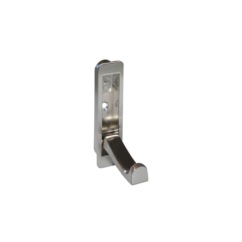 Der Zinkdruckguss-Haken mit 47,5 -111 mm Länge ist in verchromt polierter oder edelstahlfarbener Optik erhältlich und für die Befestigung an Rückwänden von Möbeln geeignet.