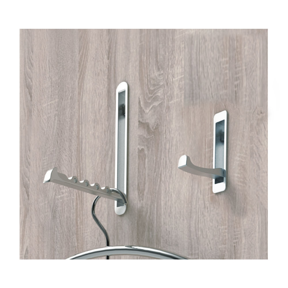 Der Zinkdruckguss-Haken mit 47,5 -111 mm Länge ist in verchromt polierter oder edelstahlfarbener Optik erhältlich und für die Befestigung an Rückwänden von Möbeln geeignet.