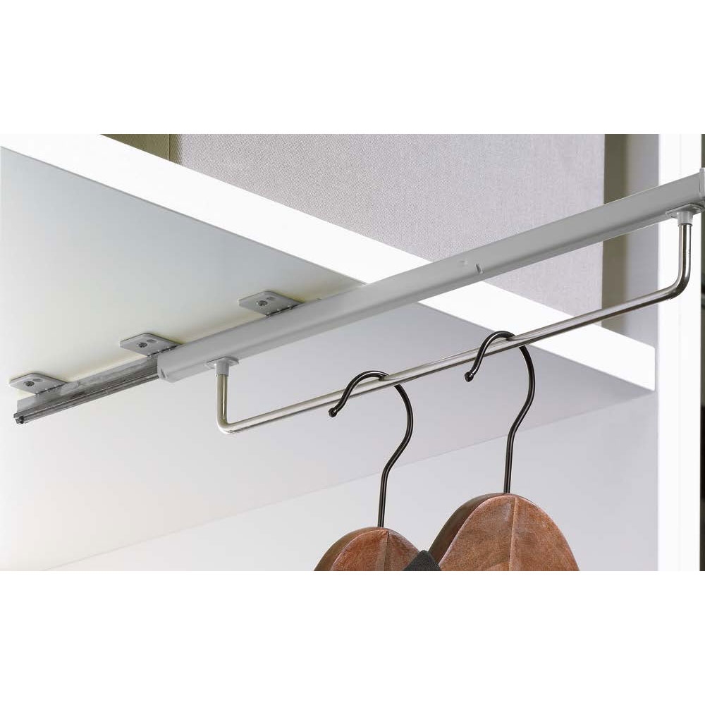Mit diesem praktischen Garderoben-Auszug ist es möglich, Kleiderbügel quer zur Schranktiefe aufzuhängen.