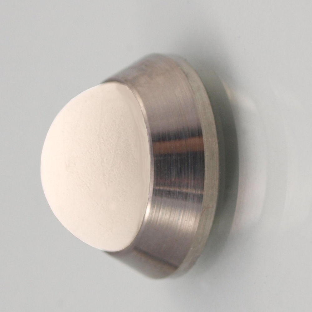 Dieser Mini-Türstopper aus Edelstahl schließt mit einem weichen Gummipuffer ab.