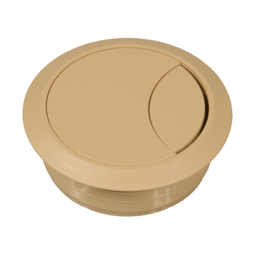 Dieser 2-teilige Kabeldurchlass aus Kunststoff hat eine linsenförmige, mit einem Federmechanismus verdrehbare Kabeldurchführung.