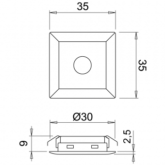 Ein- / Aus-Schalten durch Berühren der kleinen LED in der Mitte des Sensors. Während des Betriebs der Leuchten hängt das von der TOUCH ME LED abgegebene Licht von der Regulierung der Leuchten ab. Die integrierte "Night-Light"-Funktion“ (nur bei ausgeschaltetem Licht aktiv) lässt die LED von TOUCH ME bei schwächerem Umgebungslicht heller aufleuchten. Diese Funktion kann durch Berühren des Schalters aktiviert bzw. deaktiviert werden. Das Sicherheitsprogramm von TOUCH ME schaltet die daran angeschlossenen Leuchten nach 18 Stunden Dauerbetrieb automatisch ab. Dieser Einbau-Sensorschalter wird zwischen Netzgerät und Leuchte angeschlossen.