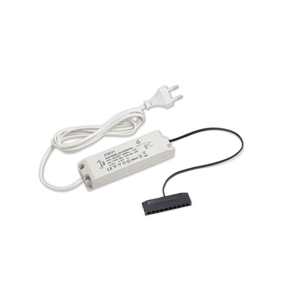 LED-Konverter ST30/12R - Funkentstörter, elektronischer LED-Sicherheitskonverter mit 2000 mm Zuleitung und Eurostecker, sowie 500 mm Sekundärleitung mit 9-Wege-Verteiler Micro12.