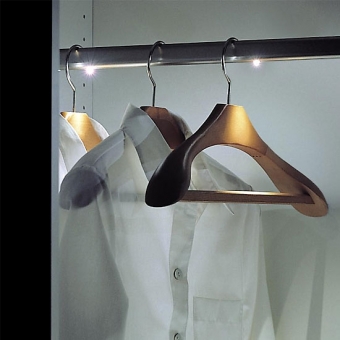 Lite inside von Hettich integriert Lichttechnik in den funktionell unveränderten Beschlag. Das mit LEDs bestückte Schrankrohr - ein erster Vertreter einer innovativen Lichttechnik im Möbel - erzeugt ein dosiertes Licht im Kleiderschrank, das Atmosphäre schafft.
