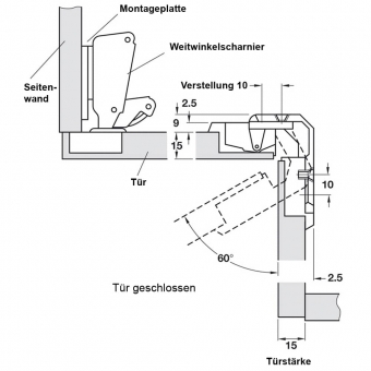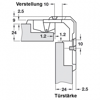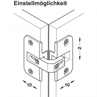 Scharnier für Eckschrank-Falttür, Fuge 4–18 mm