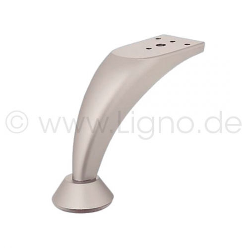 Möbelfuß aus Zinkdruckguss mit Platte, geschwungene Form - vernickelt matt - mit Platte - Höhe 115 mm