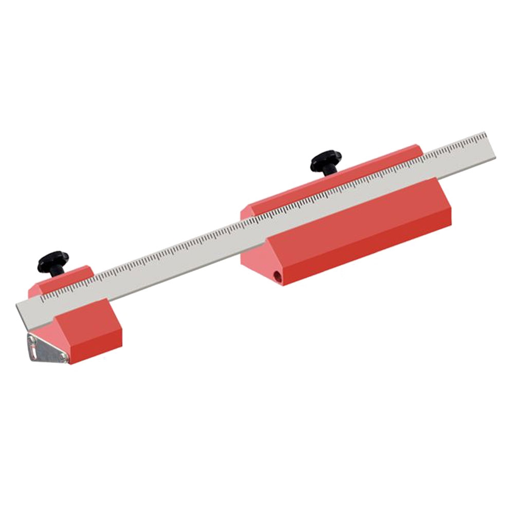 - 1 Anschlaglineal mit Doppelskala 800 mm - 1 Linealhalter zum Anschrauben an Bohrrahmen - 3 Klappanschläge zum Aufschieben auf das Lineal