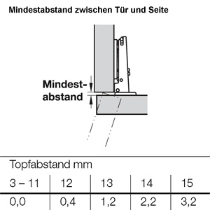 - Tür am Korpus zum Aufschieben mit Duomatic A Montageplatten oder Schnellmontage mit Duomatic SM Montageplatten