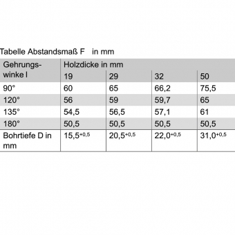 - 2 x 44 mm (Abstand von Maxifix-Gehäusemitte bis Vorderkante Tablar)