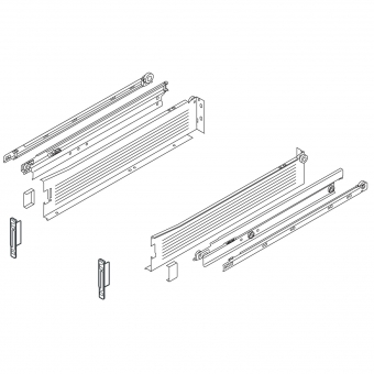 - 1 Paar Zargenführungen (rechts/links) - 1 Paar Korpusschienen (rechts/links) - 1 Paar Mittelschienen (rechts/links) - 1 Paar Standard-Frontbefestigungen (rechts/links) - 2 Abdeckkappen