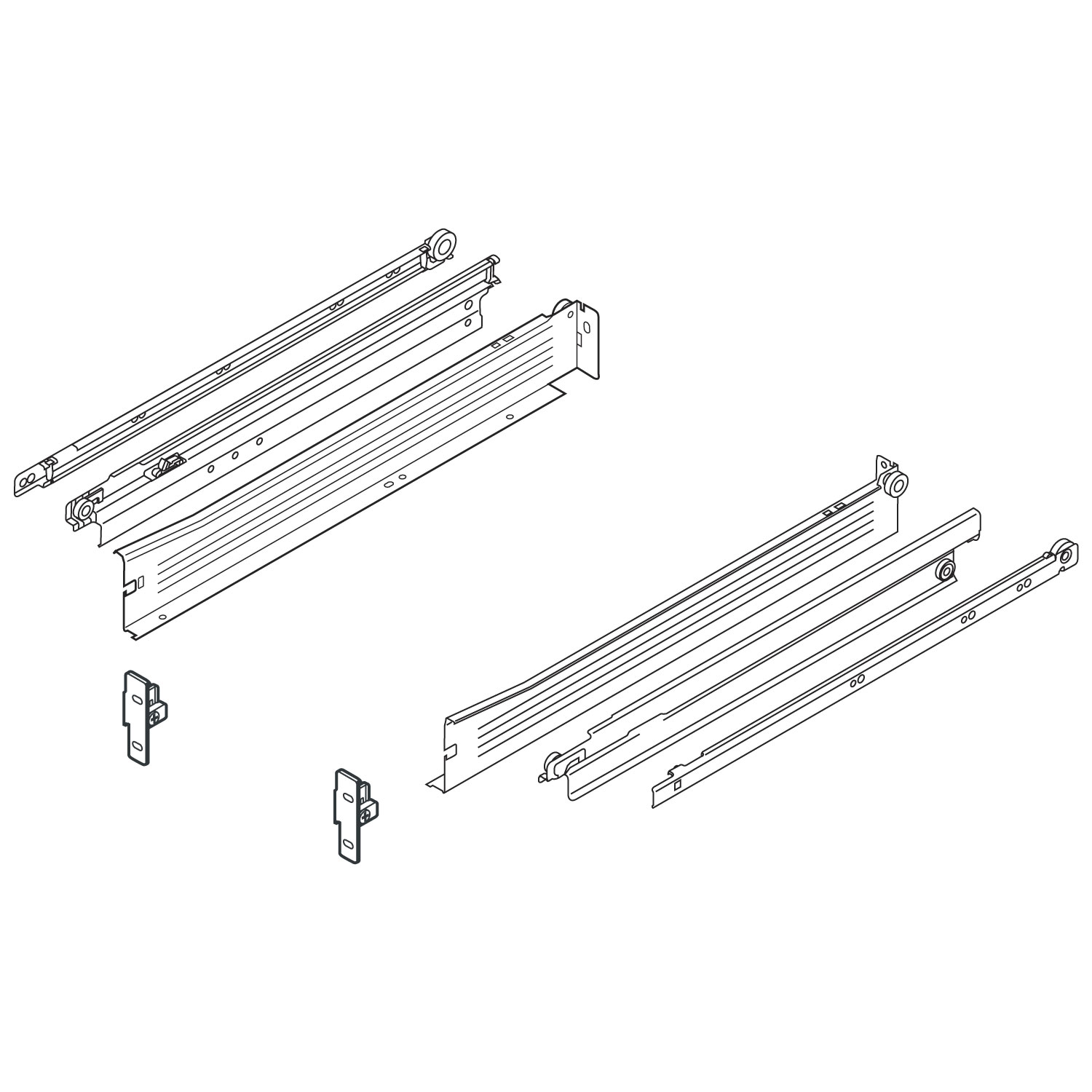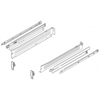 - 1 Paar Zargenführungen (rechts/links) - 1 Paar Korpusschienen (rechts/links) - 1 Paar Mittelschienen (rechts/links) - 1 Paar Standard-Frontbefestigungen (rechts/links)