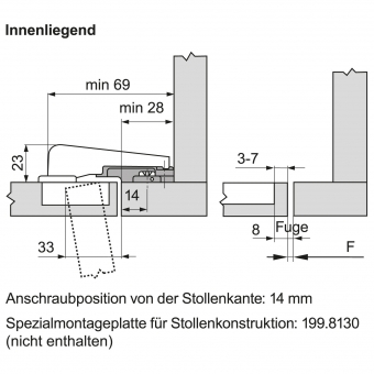 - Montageplatte ist nicht im Lieferumfang enthalten (Zubehör / Blum Montageplatte 199.8130 - bitte separat bestellen).