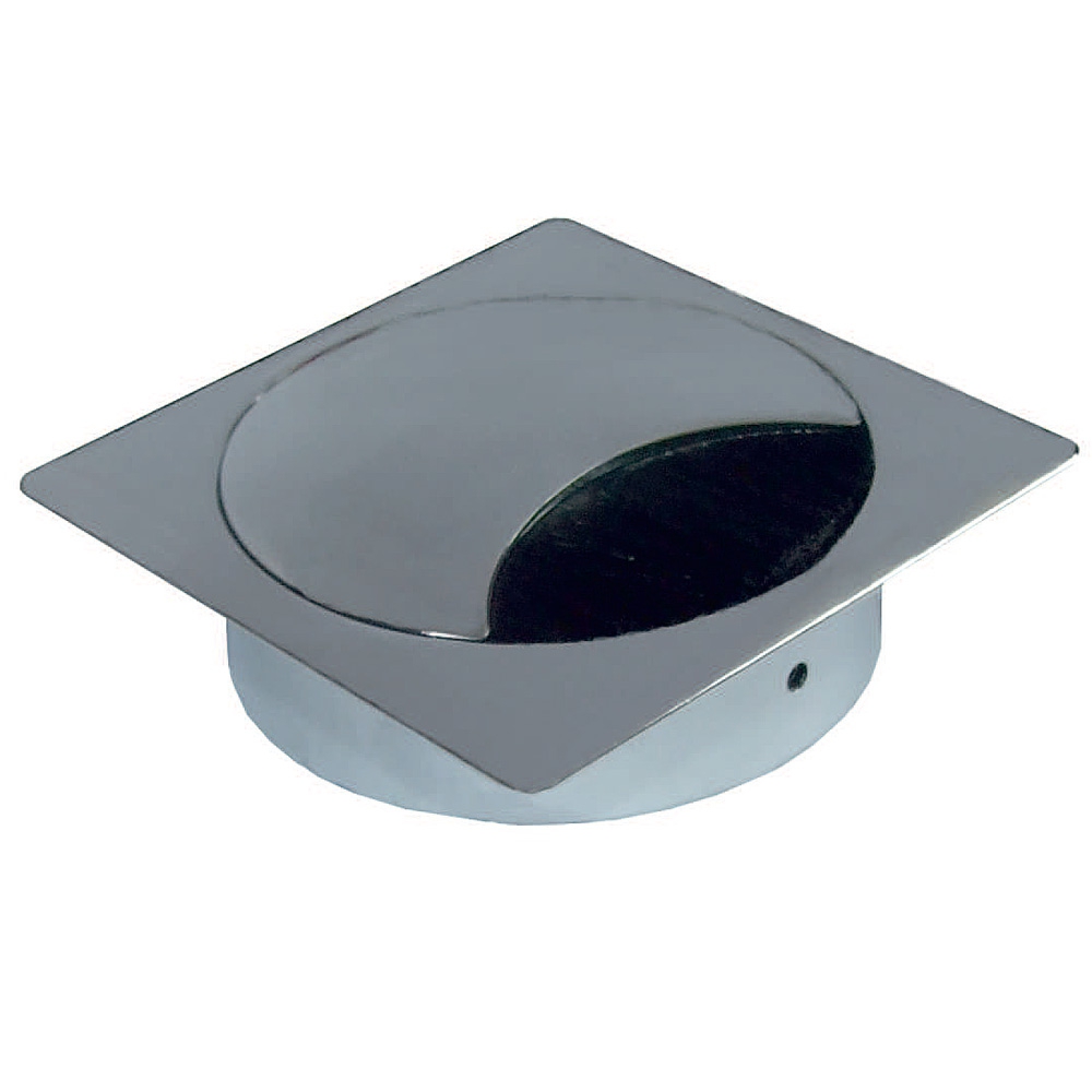 Kabeldurchlass in quadratischer Form aus Zinkdruckguss. Die halbrunden Öffnungen zur Kabeldurchführung sind mit Staubbürsten abgedeckt. Um größere Stecker durchzuführen, kann der Innendeckel problemlos herausgenommen werden.