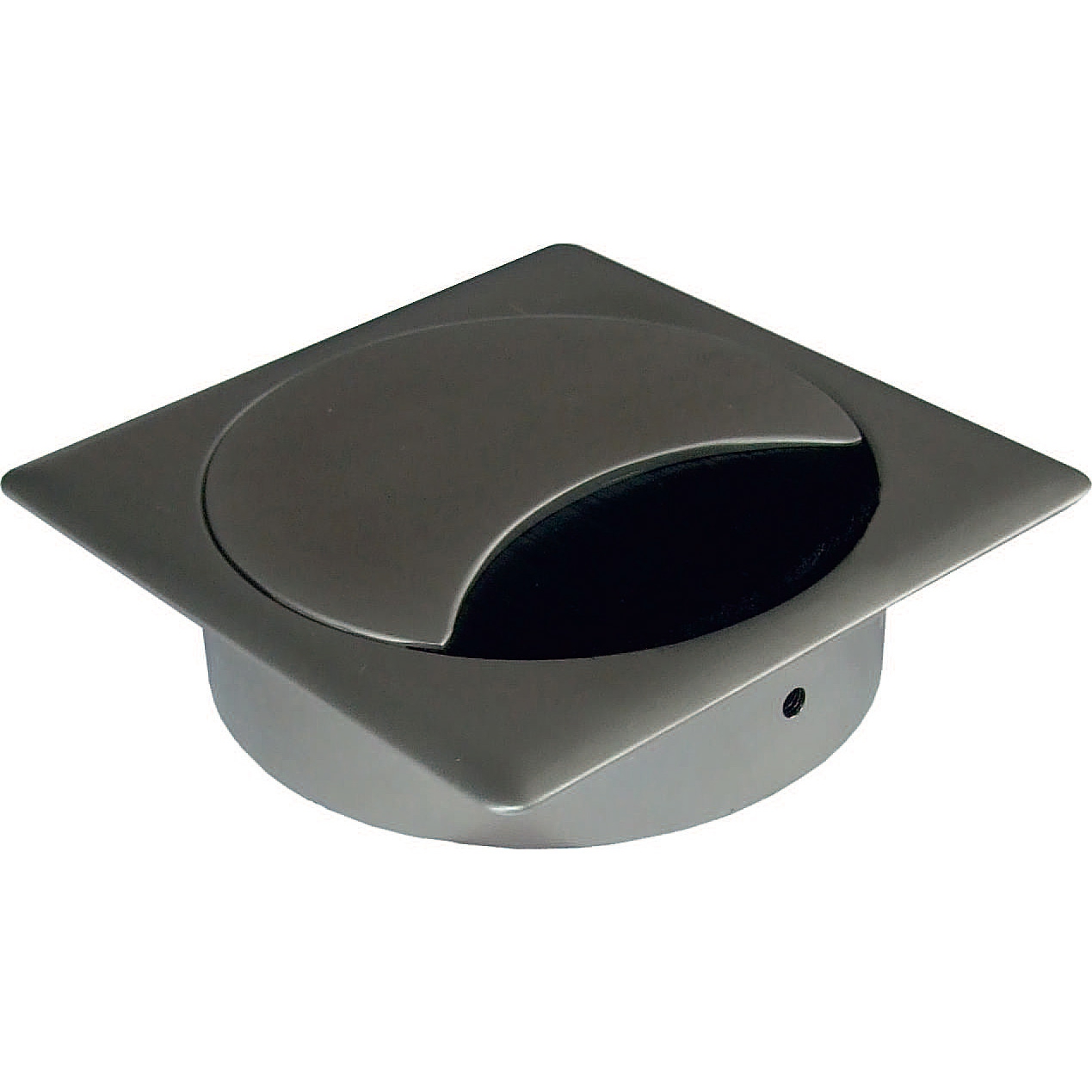 Kabeldurchlass in quadratischer Form aus Zinkdruckguss. Die halbrunden Öffnungen zur Kabeldurchführung sind mit Staubbürsten abgedeckt. Um größere Stecker durchzuführen, kann der Innendeckel problemlos herausgenommen werden.
