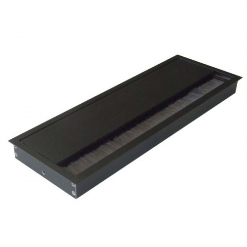 Kabeldurchführungen in 3 verschiedenen Farben, mit geradem Klappdeckel, schwarzer Bürstendichtung und sanfter Schließfunktion.