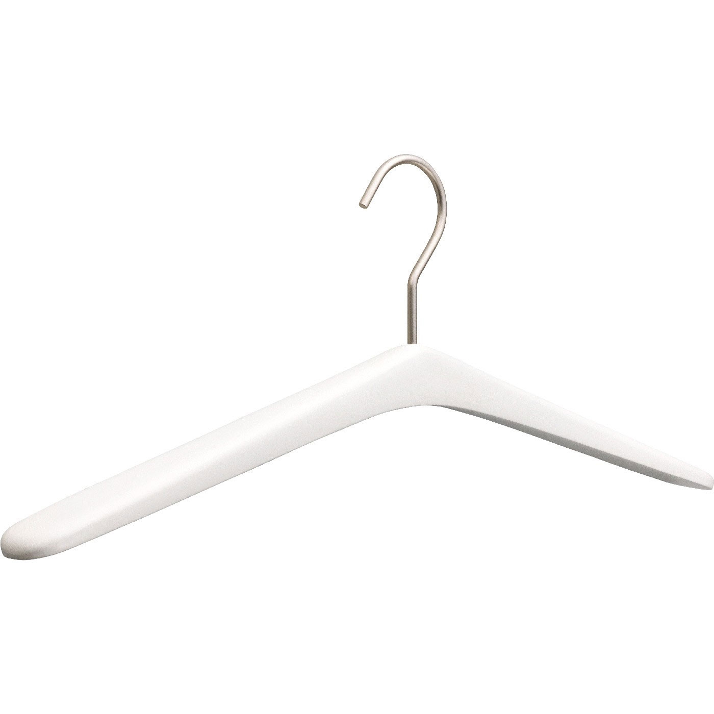 Kleiderbügel aus massiver Buche deckend weiß lackiert mit drehbaren matt silberfarbigem Haken - zum Einhängen in Stangen bis Ø 40 mm - Querschnitt