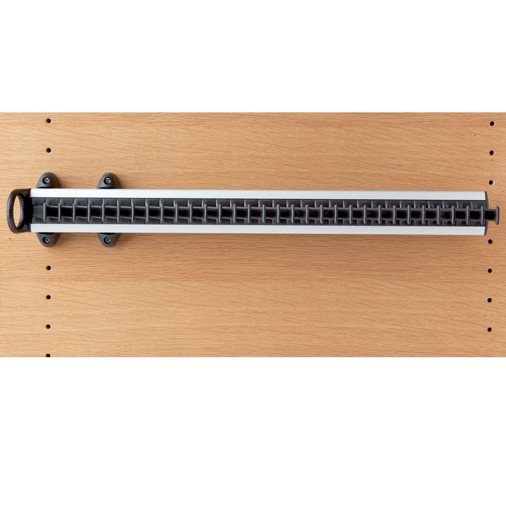Bestehend aus extrudiertem Aluminium und Kunststoff. Der Halter mit 32 Haken kann direkt im Schrankinnern oder an der Wand montiert werden.