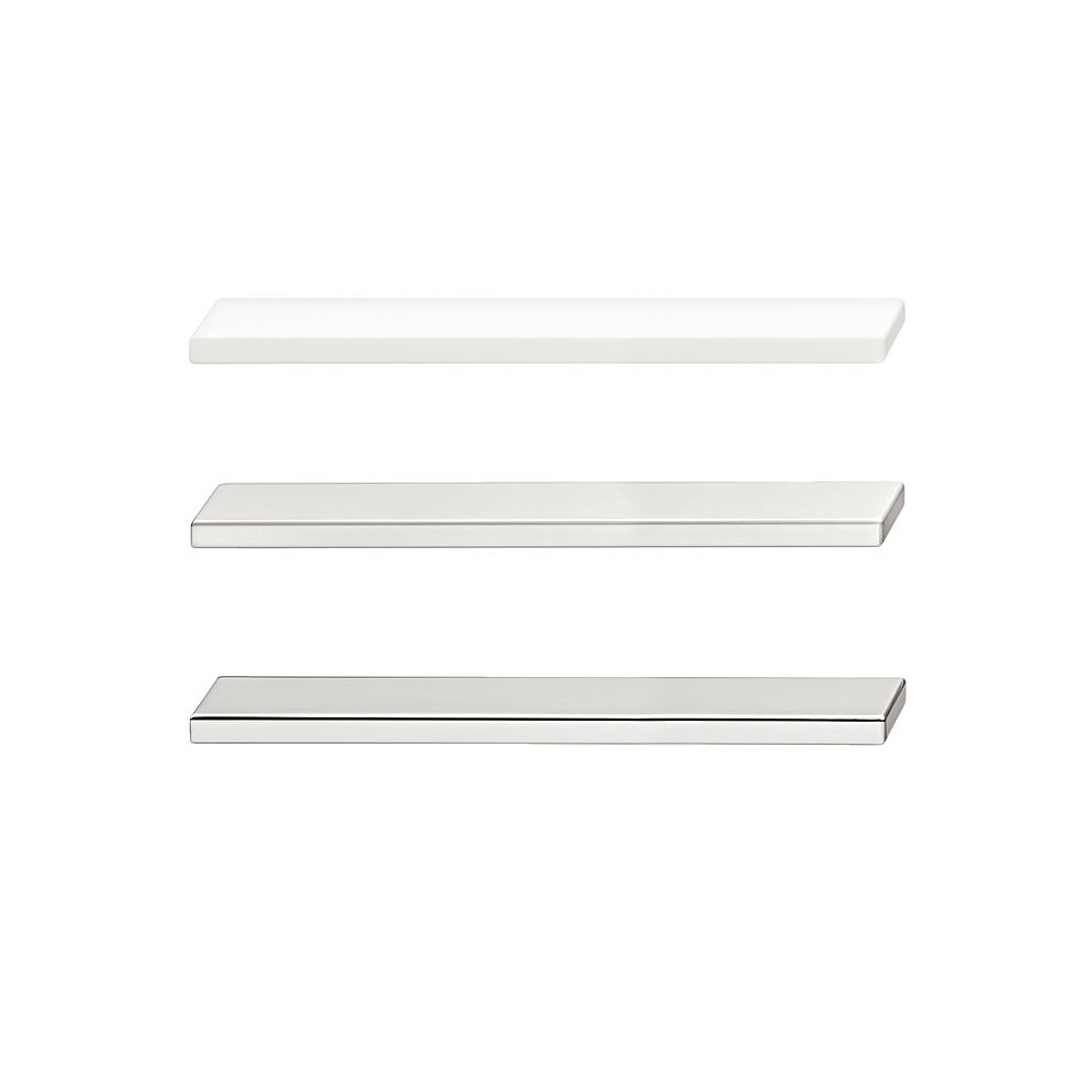 Der stilvolle, rechteckige Möbelgriff aus Stahl (Zinkdruckguss) besticht durch sein puristisches Design. Er ist äußerst pflegeleicht und durch die klassische, lineare Formgebung passt dieser Griff zu fasst allen modernen Möbeln.