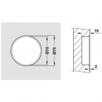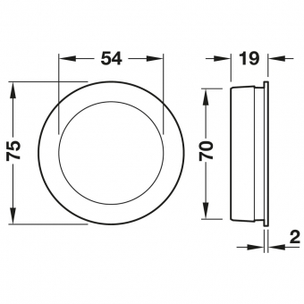 - Außendurchmesser 75 mm / Innendurchmesser 70 mm / Griffmulde Ø 54 mm