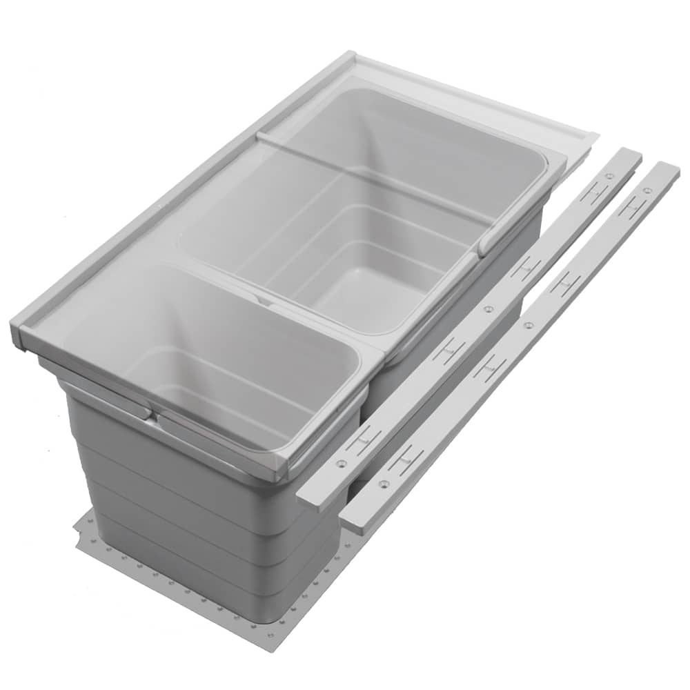Komplettset eins2vier für den stehenden Einsatz in Vollauszügen - 1 x 8 und 1 x 17 Liter Eimer, Träger- und Deckelplatte (ohne Zargensystem) - für Korpusbreite 300 mm - Nennlänge 500 mm - für Seitenwanddicke 16 / 19 mm - Eimerhöhe 310 / 220 mm - alugrau
