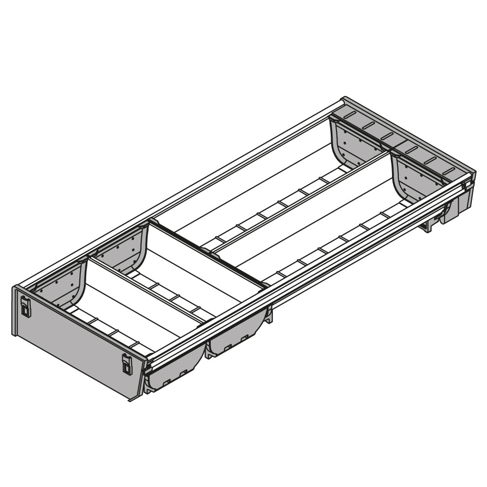 Die Inneneinteilungssysteme von ORGA LINE sind Sets, die den gesamten Schubkasten ausfüllen. Sie nutzen den Stauraum optimal und sind exakt auf die unterschiedlichen Staugüter abgestimmt. Für hohe Staugüter im Frontauszug werden Längs- und Querteiler, für niedrige Staugüter werden Schalen und Facheinteilungen eingesetzt.