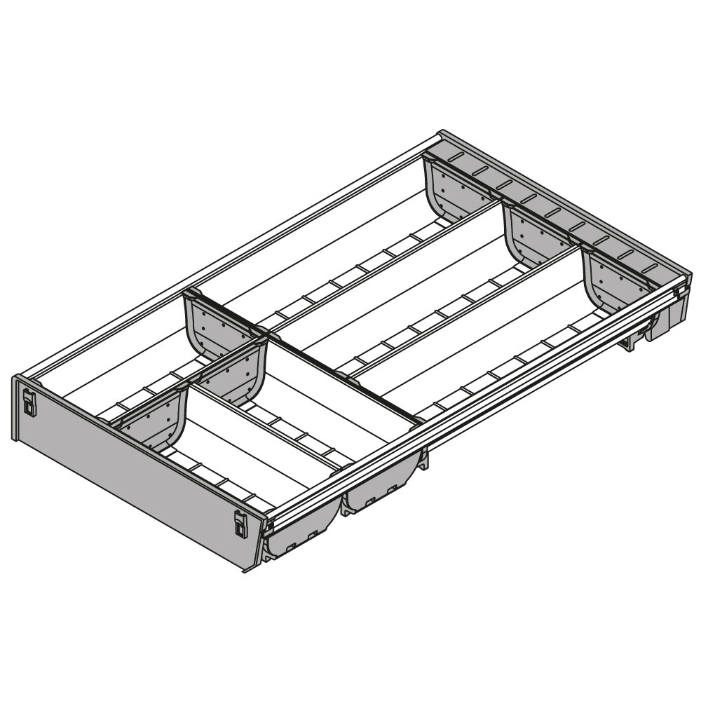 Die Inneneinteilungssysteme von ORGA-LINE sind Sets, die den gesamten Schubkasten ausfüllen. Sie nutzen den Stauraum optimal und sind exakt auf die unterschiedlichen Staugüter abgestimmt. Für hohe Staugüter im Frontauszug werden Längs- und Querteiler, für niedrige Staugüter werden Schalen und Facheinteilungen eingesetzt.