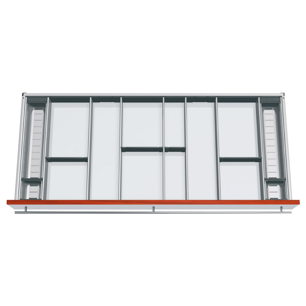 Die Inneneinteilungssysteme von ORGA-LINE sind Sets, die den gesamten Schubkasten ausfüllen. Sie nutzen den Stauraum optimal und sind exakt auf die unterschiedlichen Staugüter abgestimmt. Für hohe Staugüter im Frontauszug werden Längs- und Querteiler, für niedrige Staugüter werden Schalen und Facheinteilungen eingesetzt.