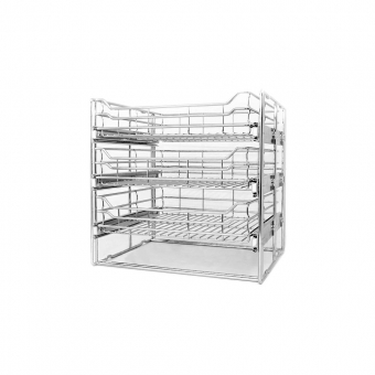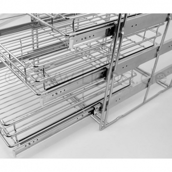 Eine Drahtkorb Einbau - Einheit besteht aus 2 oder 3 Drahtkörben, je nach Wahl, inkl. Vollauszugsschienen, Rahmen, Befestigungsmaterial und Montageanleitung.