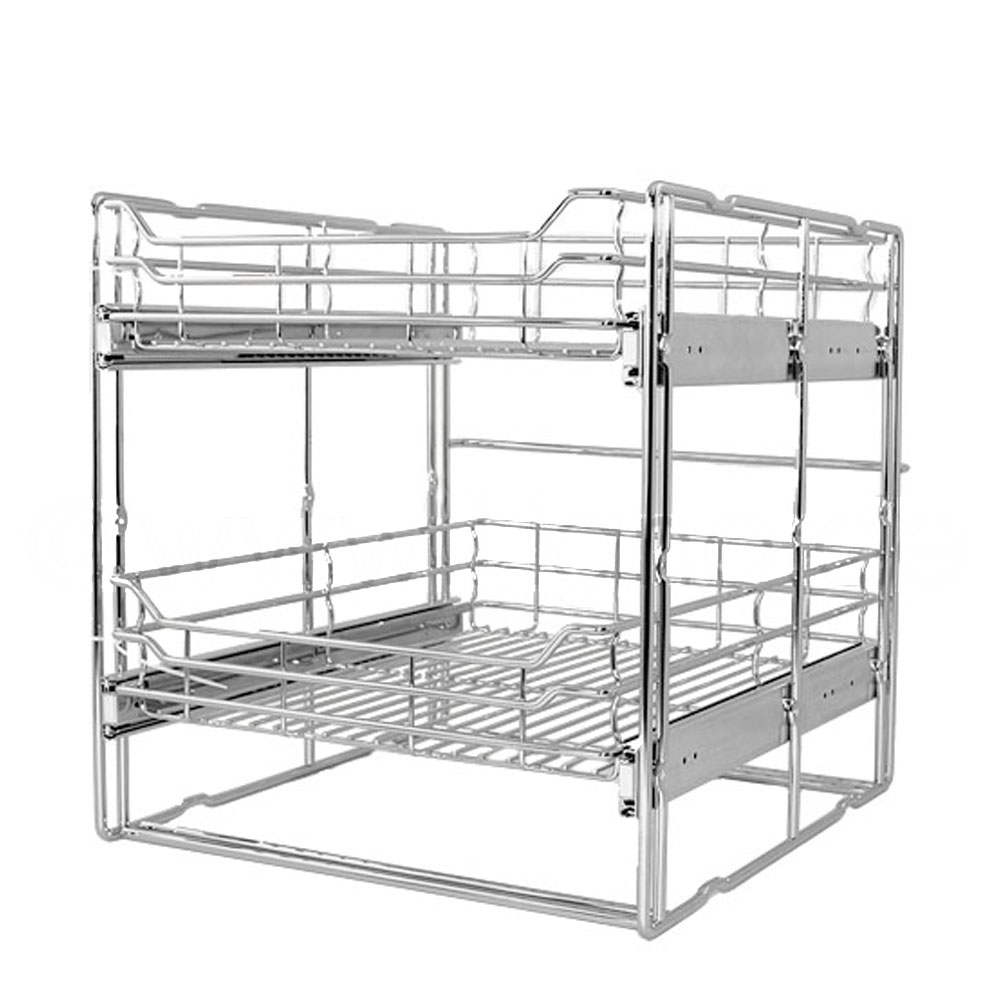 Für jeden Schrank finden Sie die richtige Größe. Den Drahtkorbeinsatz bekommen sie in 30er, 40er, 45er, 50er und 60er Schrankbreiten und als 2-fach oder 3-fach Drahtkorb Ausführung.