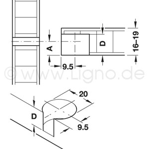 Durchmesser: Verbindergehäuse 20 mm für Holzdicke: ab 16 oder 19 mm