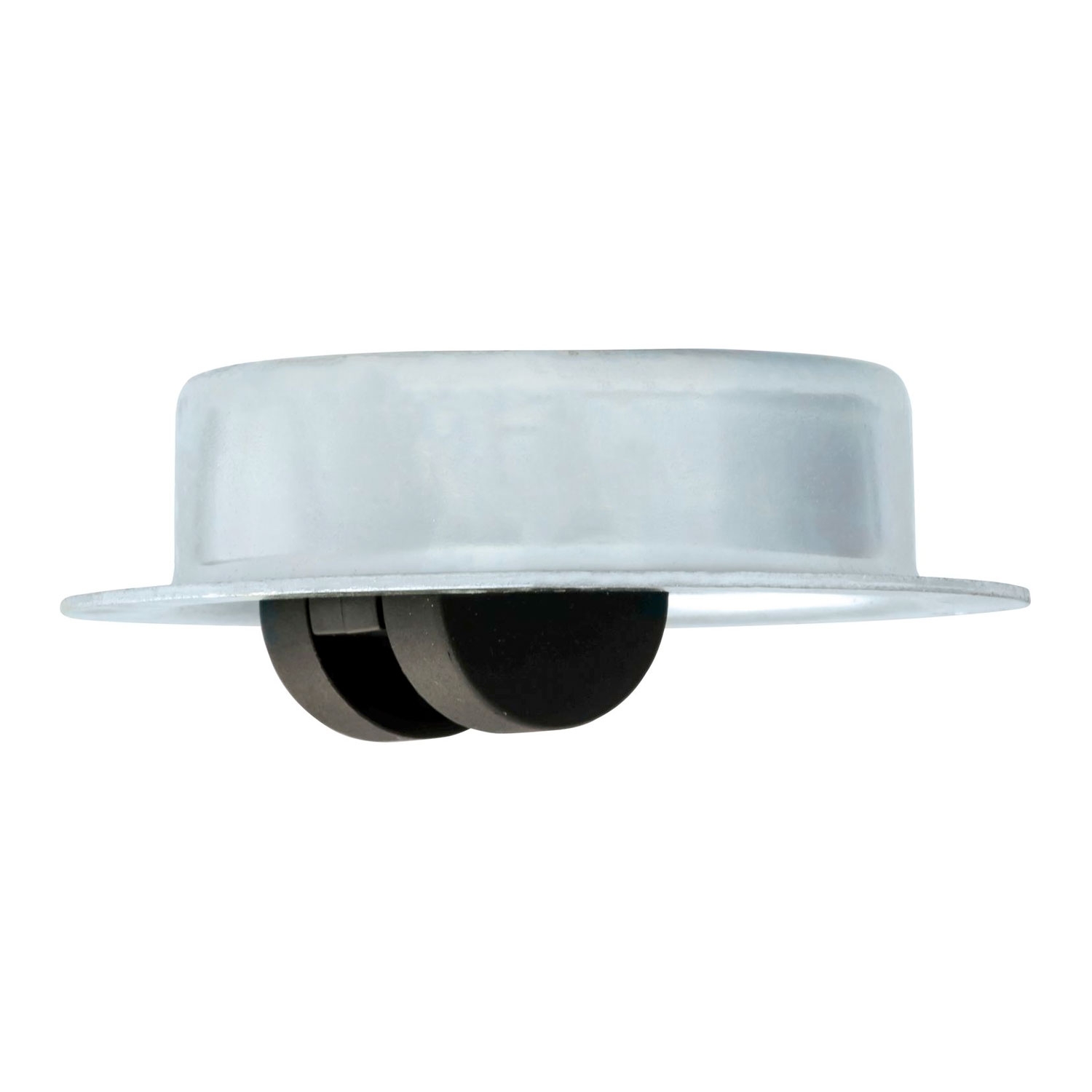Einlass-Möbelrolle mit Stahlgehäuse zur Montage in Spanplatten z.B. für Schreibtisch-Rollcontainer oder in Möbelfüße für sehr niedrige Bauhöhen – perfekter Halt durch patentierte, selbstsichernde Federscheibe.