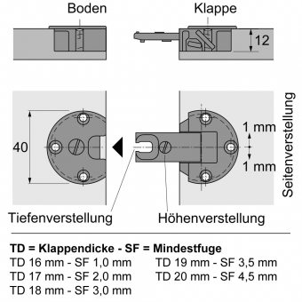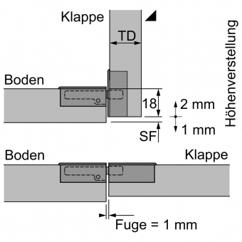 - ohne Höhenverstellung sind in geöffnetem Zustand Boden und Klappe innenseitig bu_ndig